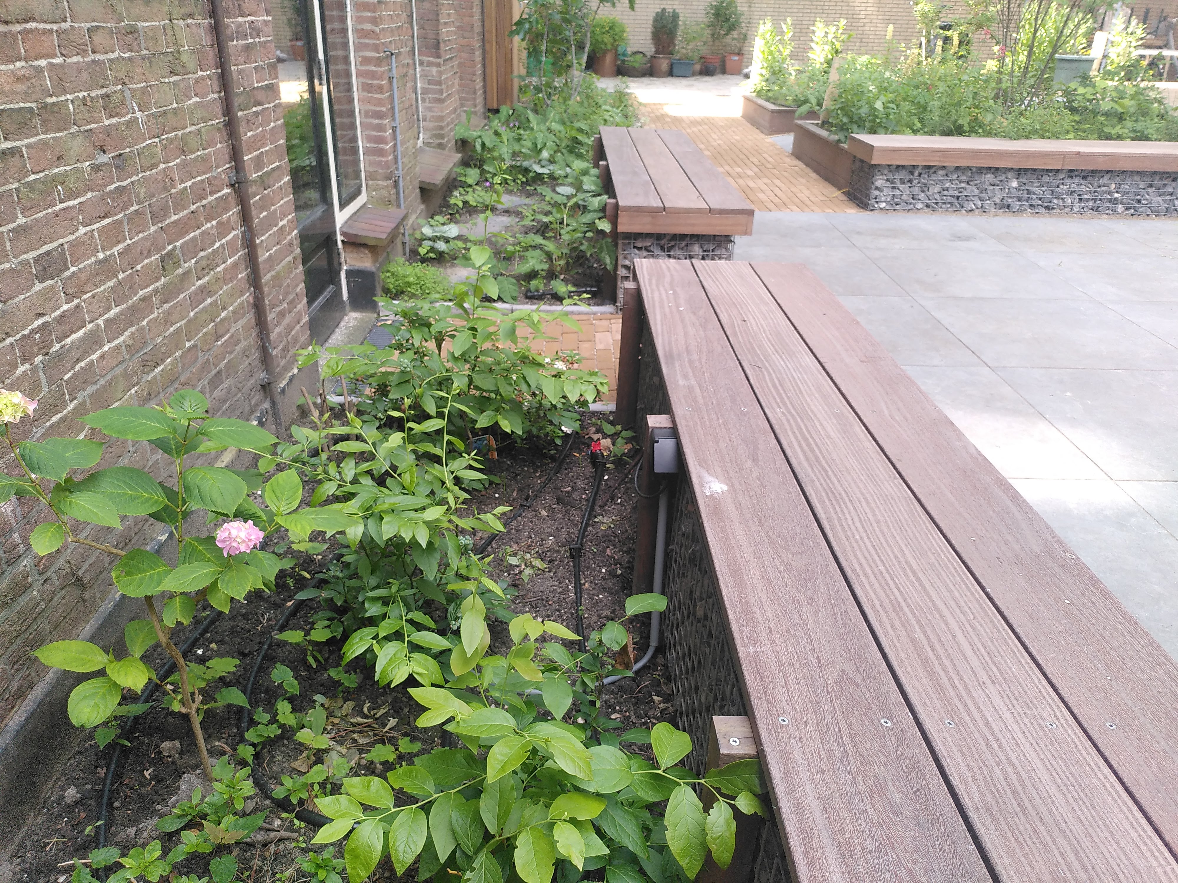 So erfreulich der Anblick mittlerweile ist, noch sind wir nicht fertig. Wer sich an die ursprünglichen Pläne des Gartens erinnert, wird feststellen, dass zum Beispiel das Dach des Podiums noch fehlt. Außerdem fehlt der geplante Fahrradschuppen. Und, es fehlen auch noch Spielmöglichkeiten für Kinder.